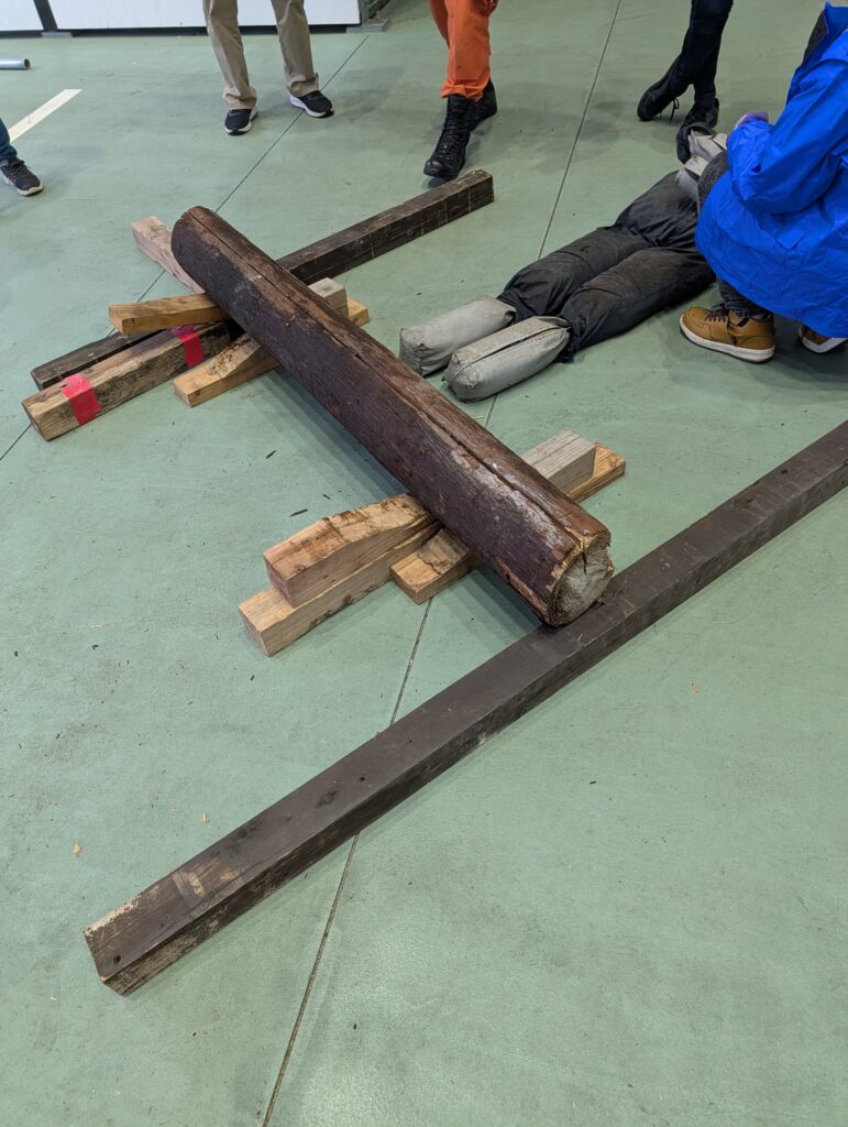 嘉麻市にある福岡県消防学校にて。 現役の消防士から学ぶものは非常に勉強になりました。写真一番右の両サイド長い木を平行に並べているのが私のアイデアでした。よりリスクを減らすために思いつきました。作業をしている最中に余震や丸太が転がったとしても平行に並べてる木の高さ分だけ押しつぶされない、消防士の方から「その平行の木、よくそこまで考えましたね、我々も学ばせてもらいます」とお言葉をもらいました。パイロットの危機管理が生きた証です。人が作業に向かう中、全体を見てるとこれは。。。いろんなリソースを活用する。CRMとTEMがいきました!