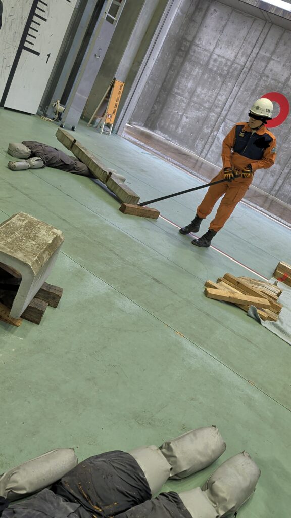 嘉麻市にある福岡県消防学校にて。 現役の消防士から学ぶものは非常に勉強になりました。写真一番右の両サイド長い木を平行に並べているのが私のアイデアでした。よりリスクを減らすために思いつきました。作業をしている最中に余震や丸太が転がったとしても平行に並べてる木の高さ分だけ押しつぶされない、消防士の方から「その平行の木、よくそこまで考えましたね、我々も学ばせてもらいます」とお言葉をもらいました。パイロットの危機管理が生きた証です。人が作業に向かう中、全体を見てるとこれは。。。いろんなリソースを活用する。CRMとTEMがいきました!